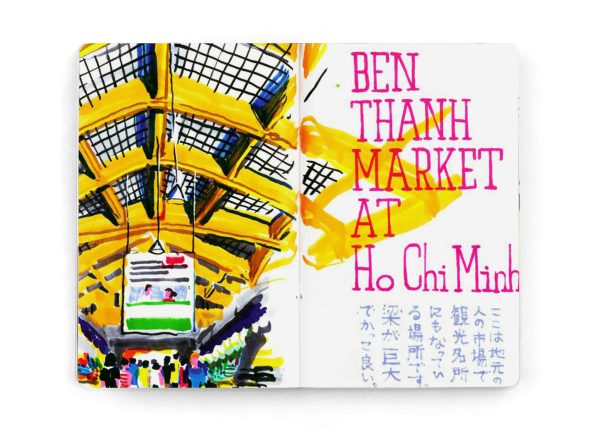 カラーペンで描かれた6か国の旅のスケッチ集。